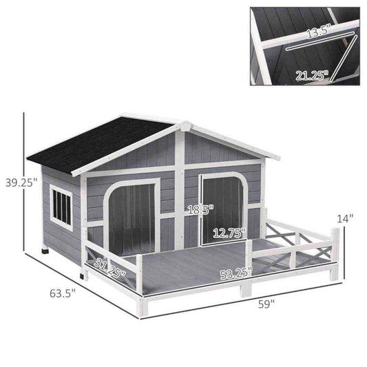 Dog House Wood Construction - Solid Fir Wood, Gray and White Design