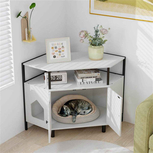 Modern Cat Litter Box Enclosure - Stylish Polygonal Cat House for Living Room