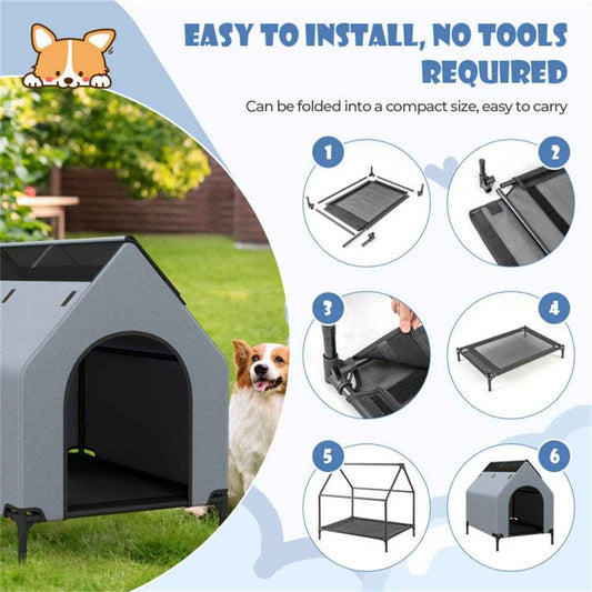 Elevated Dog House with Removable Canopy for All-Weather Comfort