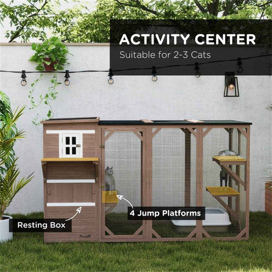 Large Outdoor Catio - Spacious Wooden Cat Enclosure with Waterproof Roof and Multi-Level Play Areas