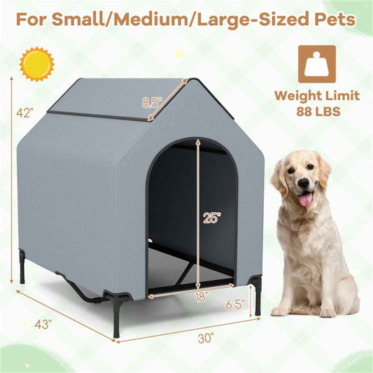 Spacious Elevated Dog House with Detachable Canopy - Perfect for Indoor & Outdoor Use (30" x 43" x 42")