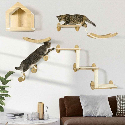 Cat Shelf Set - 10-Level Modern Cat Tower with Cozy Cat House and Sisal Scratching Posts