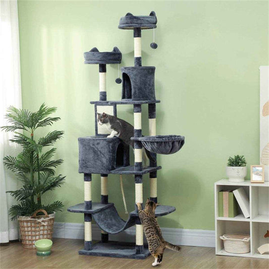 Tall Cat Tree for Multiple Cats with Condos, Hammocks, and Scratching Posts