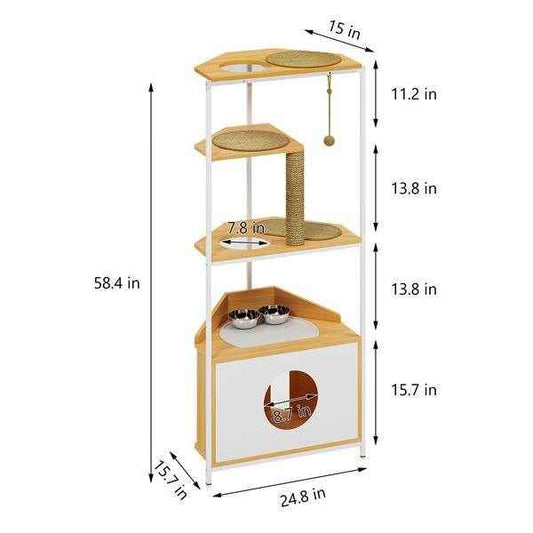 Corner Cat Tower with Scratching Post, Feeding Station & Climbing Platforms