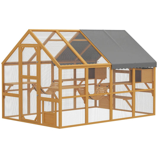 Large Outdoor Catio with Waterproof Roof & Multi-Level Play Areas for Cats