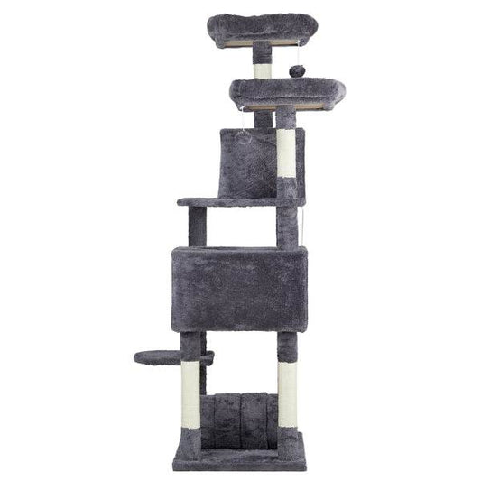 65-Inch Cat Tree Tower for Indoor Cats – Large Multi-Level Condo with Padded Beds, Spacious Hideouts, Sisal Scratching Posts, Play Tunnel, and Toy Balls in Dark Gray