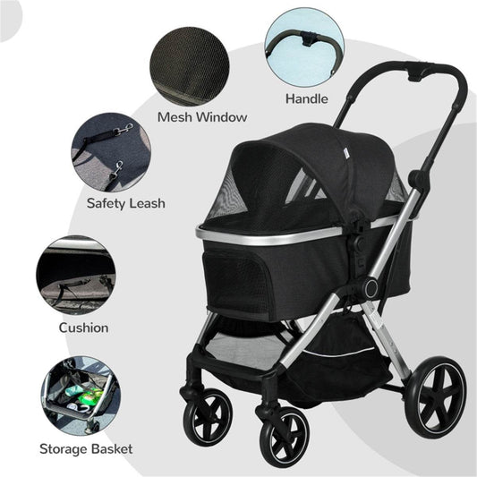 2-in-1 Dog Stroller Carrier - Foldable with Adjustable Canopy, Secure & Lightweight